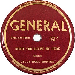 In December, 1939, Jelly Roll Morton (1885 - 1941) recorded 2 sessions for the General Records Co. label. These sessions resulted in 10 songs being released on 5 General label records. These records could be purchased individually or as a 5 record album set called JELLY ROLL MORTON - NEW ORLEANS MEMORIES. These recordings have since been reissued on lots of labels in just about every musical format, but this the original General album G-11. A truly historical album, as these were Morton's last recording sessions!