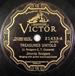 3) The 'B' side is initial release of a song from Jimmie Rodgers first recording session for Victor in Camden, Nov 30, 1927. Only 4 songs from this session were issued.